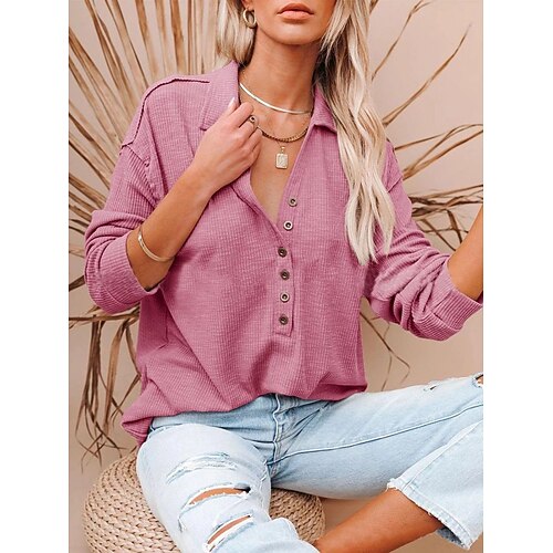 Per donna Camicia Blusa Bottoni Semplice Elegante Manica Lunga Colletto a Camicia Top Regolari Quotidiano Lavoro Ferie Blu Nero Bianco Rosa Vino Primavera Autunno