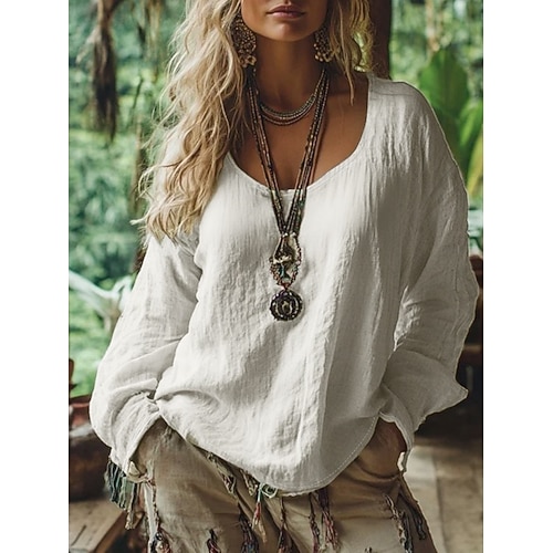 Per donna Camicia Blusa Semplice Elegante Classico Moderno Manica Lunga Girocollo Top Regolari Quotidiano Ferie Uscire Bianco Estate Primavera