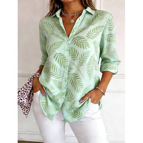 Per donna Camicia Camicia button-down Camicia casual Camicia da Spiaggia Stampato Grafico Foglia Elegante Classico Casual Manica Lunga Colletto a Camicia Top Regolari Quotidiano Ferie Uscire Giallo