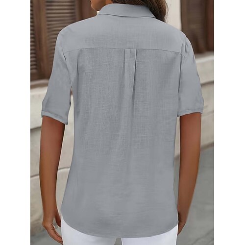 Per donna Camicia di lino Camicia Estiva Camicia con Bottoni Bottoni Tinta unica Semplice Quotidiano Elegante Casual Manica Corta Collo ripiegato Top Regolari Ferie Uscire Abbigliamento da vacanza