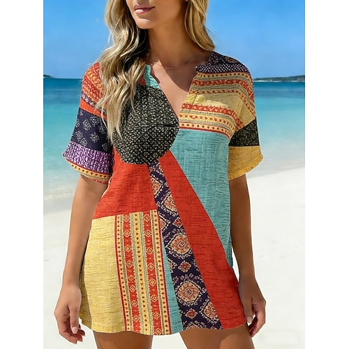 Per donna Camicia Camicia casual Camicia da Spiaggia Blusa Stampato Floreale Grafico Bohemien Elegante Moderno Manica Corta Scollo a V Top Regolari Quotidiano Ferie Uscire Blu Giallo Verde chiaro