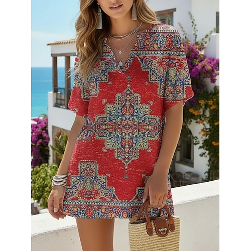 Per donna Camicia Camicia casual Camicia da Spiaggia Blusa Stampato Floreale Grafico Elegante Classico Moderno Senza Maniche Manica Corta Scollo a V Top Regolari Quotidiano Ferie Uscire Blu Rosso