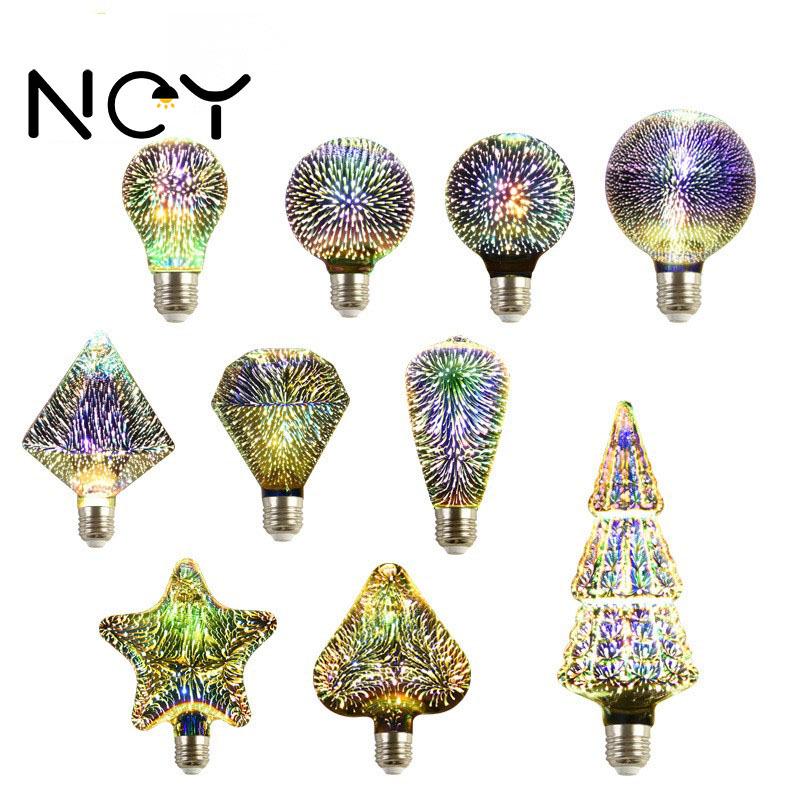 3D LED Edison Glühbirne: Buntes Feuerwerk, Kreative Kunst, E27-Schraubsockel, Sieben Farben.