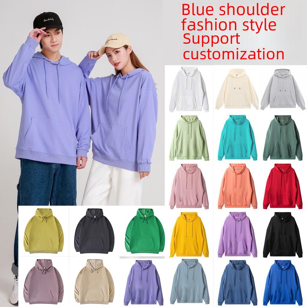 Europäischer und amerikanischer Heißprägedruck im Herbst und Winter, lockeres und modisches Kapuzen-Sweatshirt für Herren und Damen mit Taschen cm bla