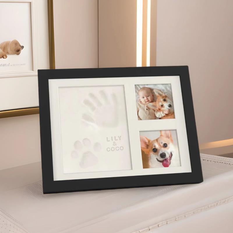 Baby Hand- und Fußabdruck Rahmen mit Stempelkissen - Erster Geburtstag, Hundert Tage, Vollmond-Geschenk, Moderner minimalistischer Stil