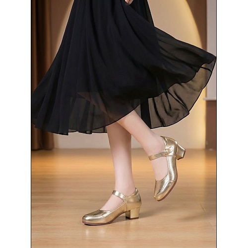 Per donna Scarpe per balli latini Palco Chacha Basic Festa / Serata Soletta più morbida A fantasia Basso Punta aperta Tracolla Per adulto Caffè