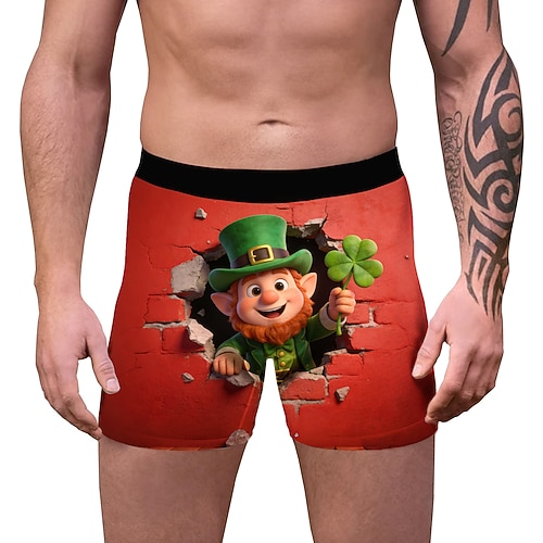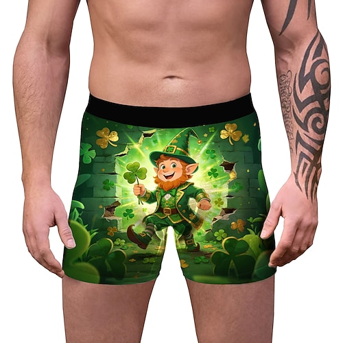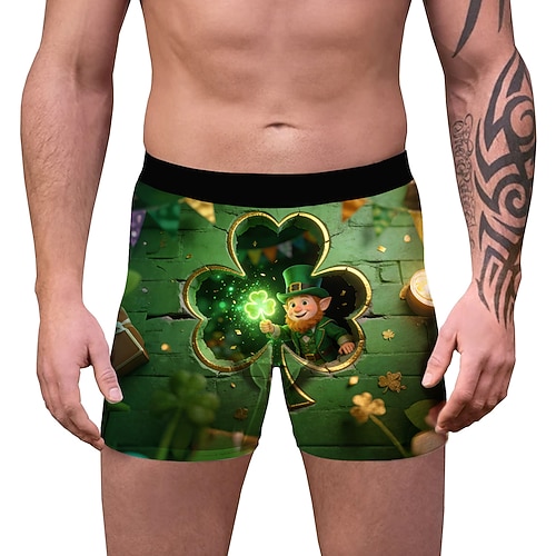 San Patrizio 2026 Leprechaun Trifoglio Irlandese fortunato Carnevale Boxer aderenti Biancheria intima Cosplay Adulti Per uomo Giorno di San Patrizio Casuale Feste Costume di Carnevale facile Vestirsi