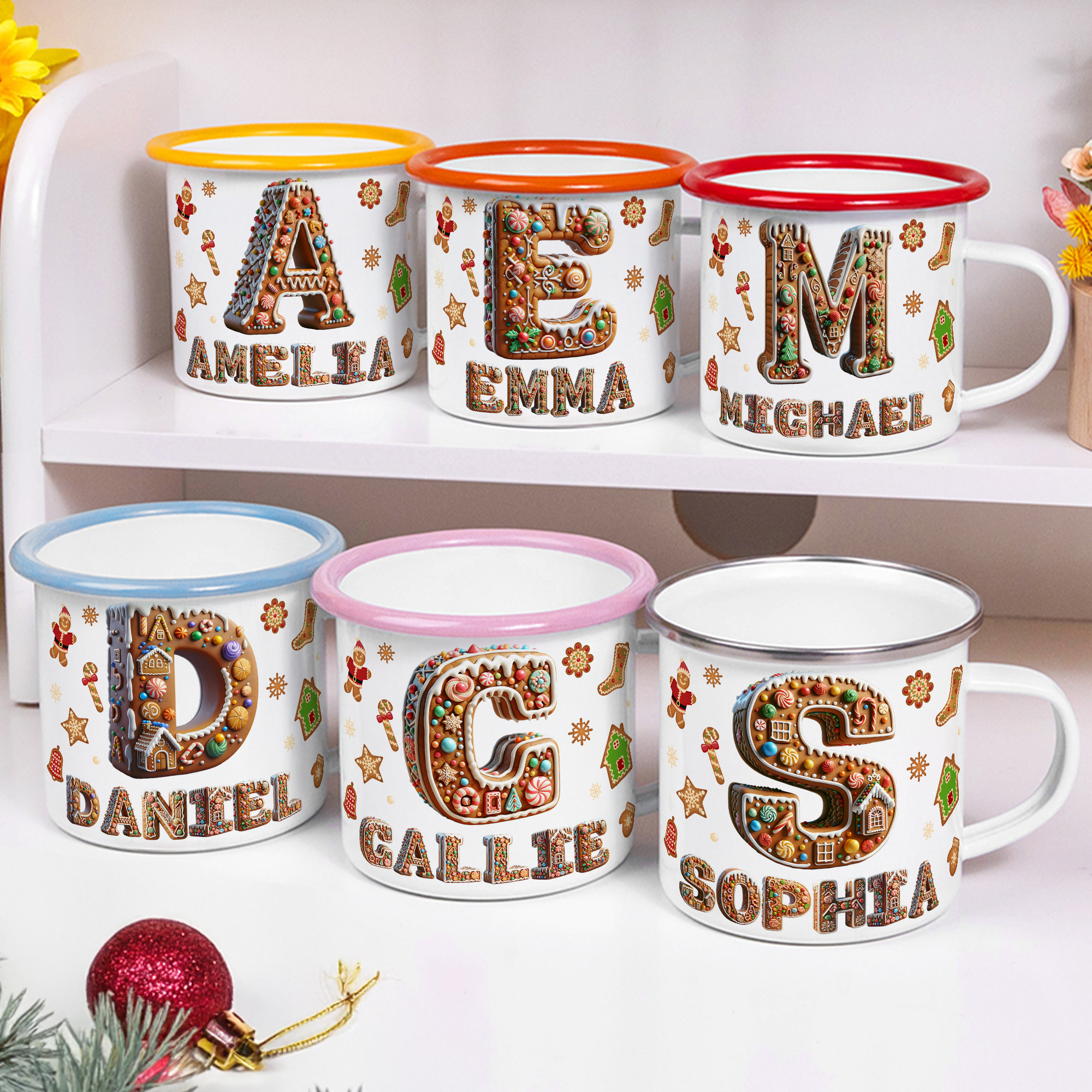 Personalizzato Gingerbread Candy iniziale 12 oz tazza smaltata con nome uso quotidiano regalo di Natale per la famiglia Kid