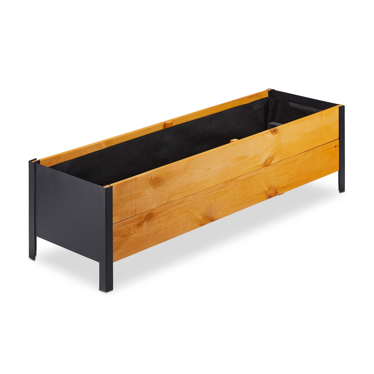 Relaxdays Hochbeet inkl. Vlies, HBT: 32,5x118x35 cm, Holz Kräuterbeet für Terrasse, Balkon & Garten, rechteckig, natur