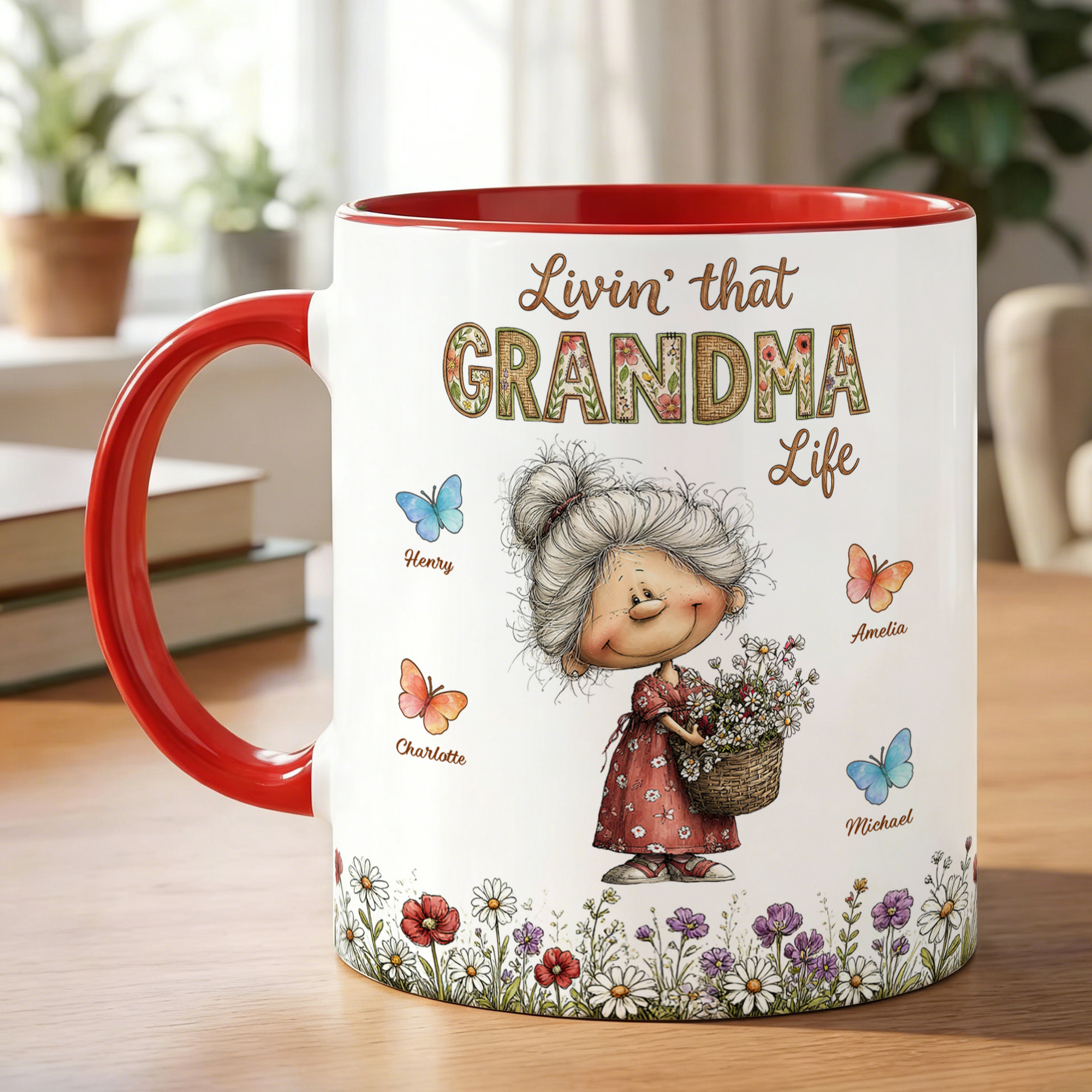 Personalizado lindo dibujo animado abuela mariposa 11 oz 15 oz taza de café de cerámica con nombres Día de la Madre regalo de cumpleaños para la abuela