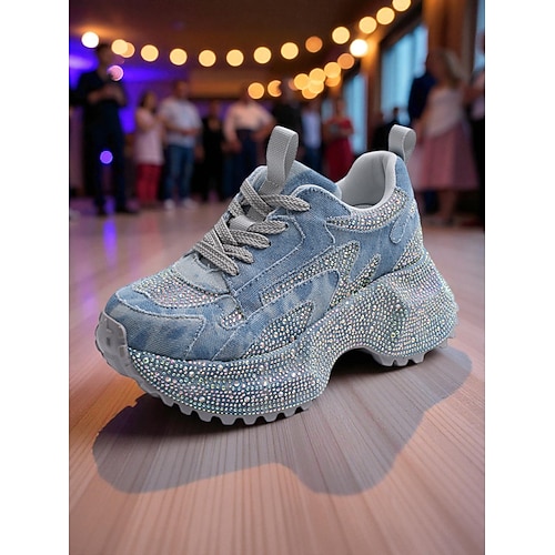 Sneakers da donna con plateau e strass viola - scarpe da ballo scintillanti e voluminose per la moda in discoteca, spettacoli teatrali e feste notturne