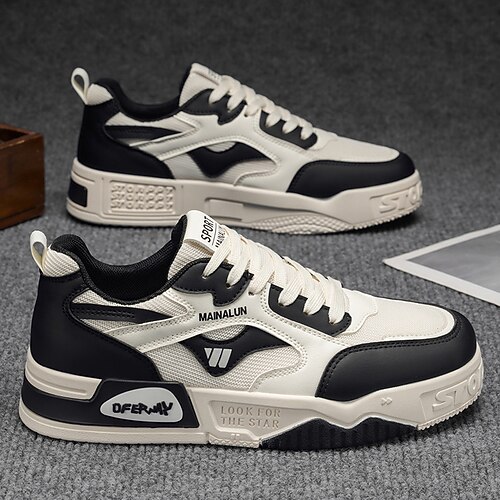 sneakers casual beige da uomo con dettagli neri, scarpe stringate leggere e comode, ideali per l'uso quotidiano, la palestra e le attività all'aperto