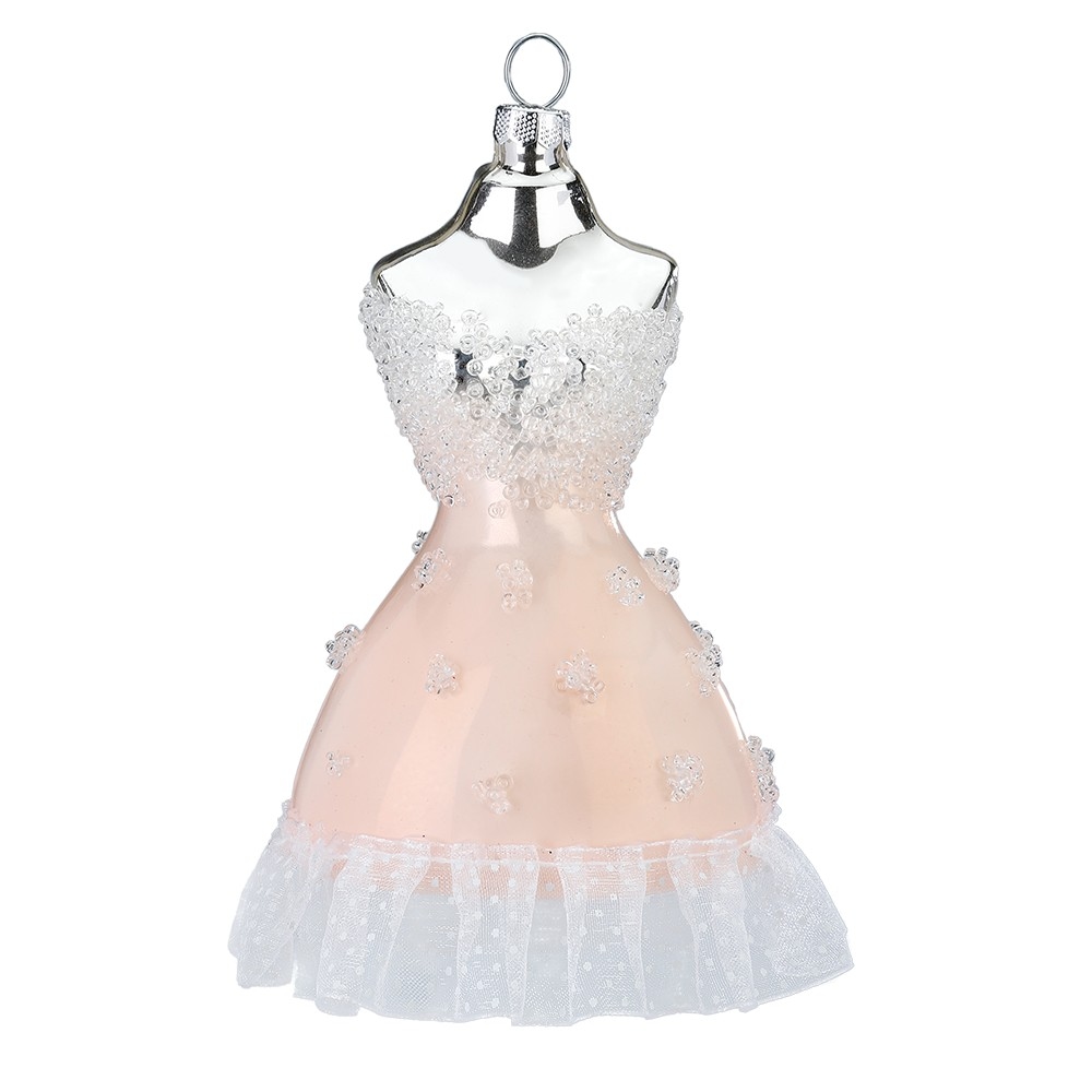 Inges Magic & Goodz Cocktailkleid Spitze Glas 12cm Christbaumschmuck Weihnachtskugeln hellrosa rose