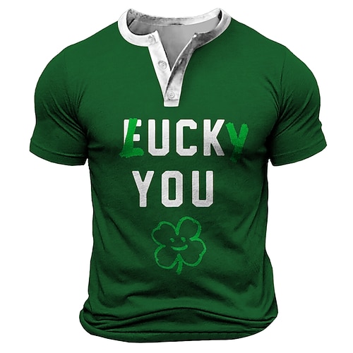 Per uomo San Patrizio Divertente LUCKY YOU Maglietta Maglia Henley Manica Corta Designer Retrò Vintage Casuale Quotidiano Streetwear Estate Primavera Nero Grigio Verde Henley Maglietta Henley