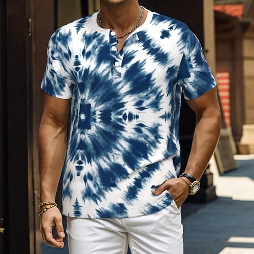 Per uomo Stampa tie dye Maglietta Maglia Henley Manica Corta Designer Retrò Vintage Casuale Quotidiano Streetwear Estate Primavera Blu Henley Maglietta Henley