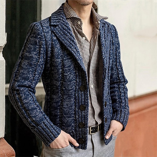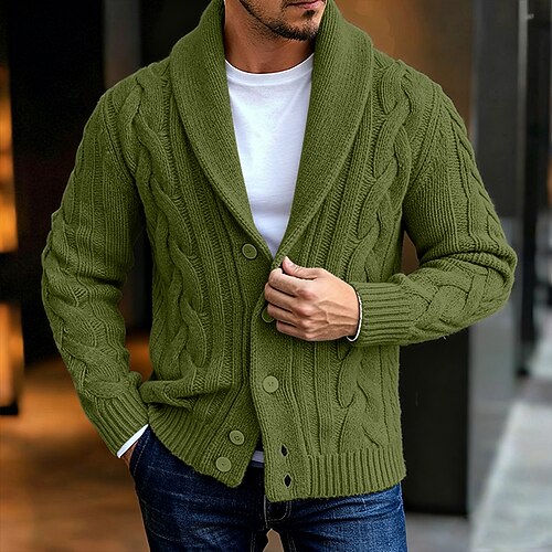 Per uomo Maglione a trecce Felpa Cardigan Treccia Maglia Top Regolari Lavorato a maglia Semplice Collo a scialle Moderno Contemporaneo Casual Casuale Ferie Abbigliamento Primavera Autunno Blu