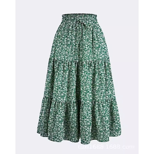 Per donna Gonna Linea A Svasato Casual Boho Maxi Vita Alta Gonne Floreale Stampato Micro-elastico Vacanza Ferie Nero Blu Arancione Verde Estate Poliestere