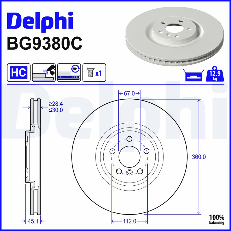 DELPHI Bremsscheibe BG9380C vorne rechts belüftet 360mm für MINI BMW 34106884002