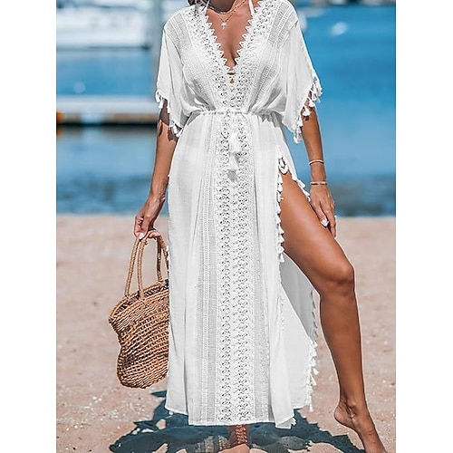 Per donna Abito maxi Abito Bianco Abito da Spiaggia Abito nero Copricostume Elegante Moda Classico Quotidiano All'aperto Spiaggia Vestibilità comoda Semplice Manica Corta Scollo a V Nero Bianco