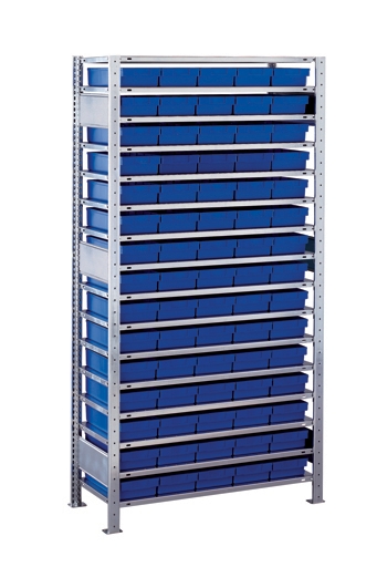 PROREGAL Kleinteileregal-Set 3 MULTIplus150 | Grundregal | HxBxT 200x100x40cm | 16 Fachböden | inkl.75 Kästen 8x19x40cm Blau | Verzinkt