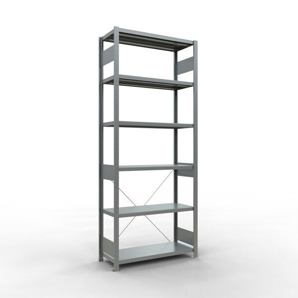 SCHULTE Lagertechnik Grundregal, Fachbodenregal Stecksystem MULTIplus250, 2500 x 1000 x 400 mm (HxBxT), 6 Fachböden, Kreuzstrebe, verzinkt