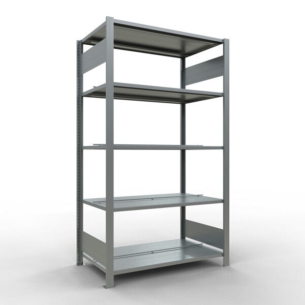 SCHULTE Lagertechnik Grundregal, Büro-Fachbodenregal Stecksystem MULTIplus150, 1800 x 1000 x 600 mm (HxBxT), 5 Fachböden, Längenriegel, verzinkt, mit Mittelanschlag