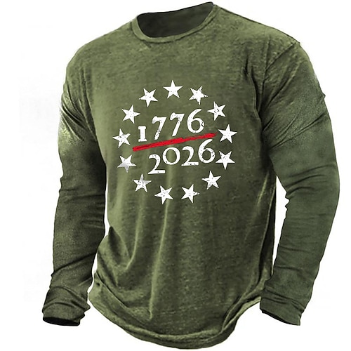 250° anniversario dell'America Per uomo 250° anniversario degli Stati Uniti Maglietta Manica Lunga maglietta Stampa 3D Girocollo Camicia Quotidiano Casual Quotidiano Viaggio Feste Blu Nero Verde