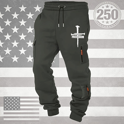 Per uomo Pantaloni da Tuta Cargo Pantaloni da tuta Joggers Pantaloni Coulisse Tasca Elastico in vita Croce Comodità Traspirante Quotidiano All'aperto 250° anniversario dell'America Vacanza Moda Nero