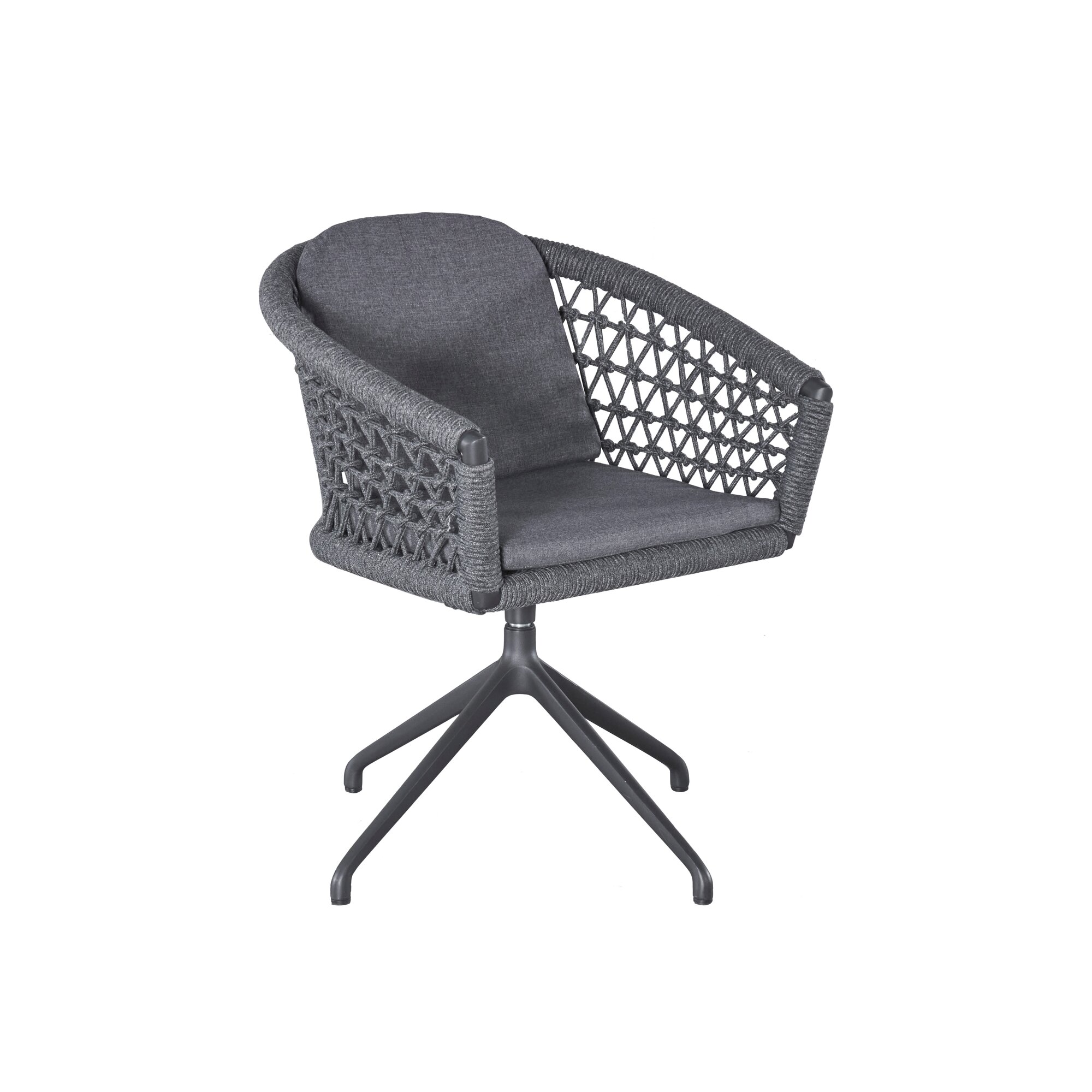 PROREGAL 2er-Set Rope-Barhocker | HxBxT 92x51x53 cm | Sitzhöhe 76cm | Anthrazit | Kissen Taupe | Outdoor Sitzpolster Seilgeflecht Metall Holz-Optik