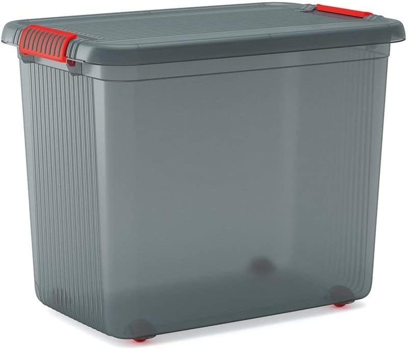 PROREGAL Mega Deal 5x Mehrzweck Aufbewahrungsbehälter HAWK mit grauem Deckel und Rädern, HxBxT 17x79x39cm, 35 Liter, Transparent, Behälter, Box