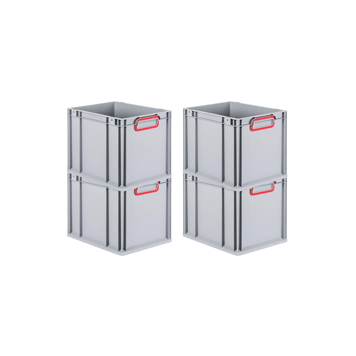PROREGAL SuperSparSet 4x Eurobox NextGen Color, HxBxT 32x30x40cm, 30 Liter, Griffe rot zu, Grau, Eurobehälter, Box, Transportbehälter