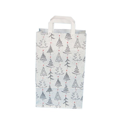 Pack4Food24 250 Papiertragetaschen Einkaufstüten Weihnachten weiß grau rot 22+10x36cm 70g/m²