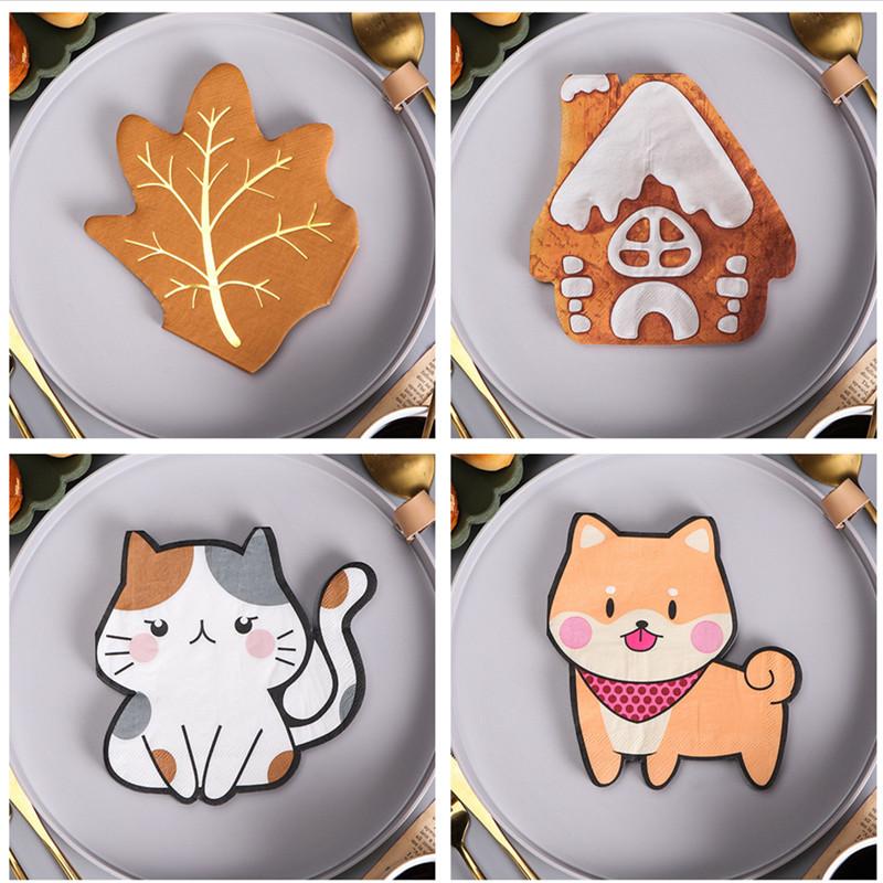 20 Stück/Packung Blatt Tier Katze Hund Form Gedruckte Einweg Servietten Taschentücher Papier Haus Geburtstagsparty Dekoration