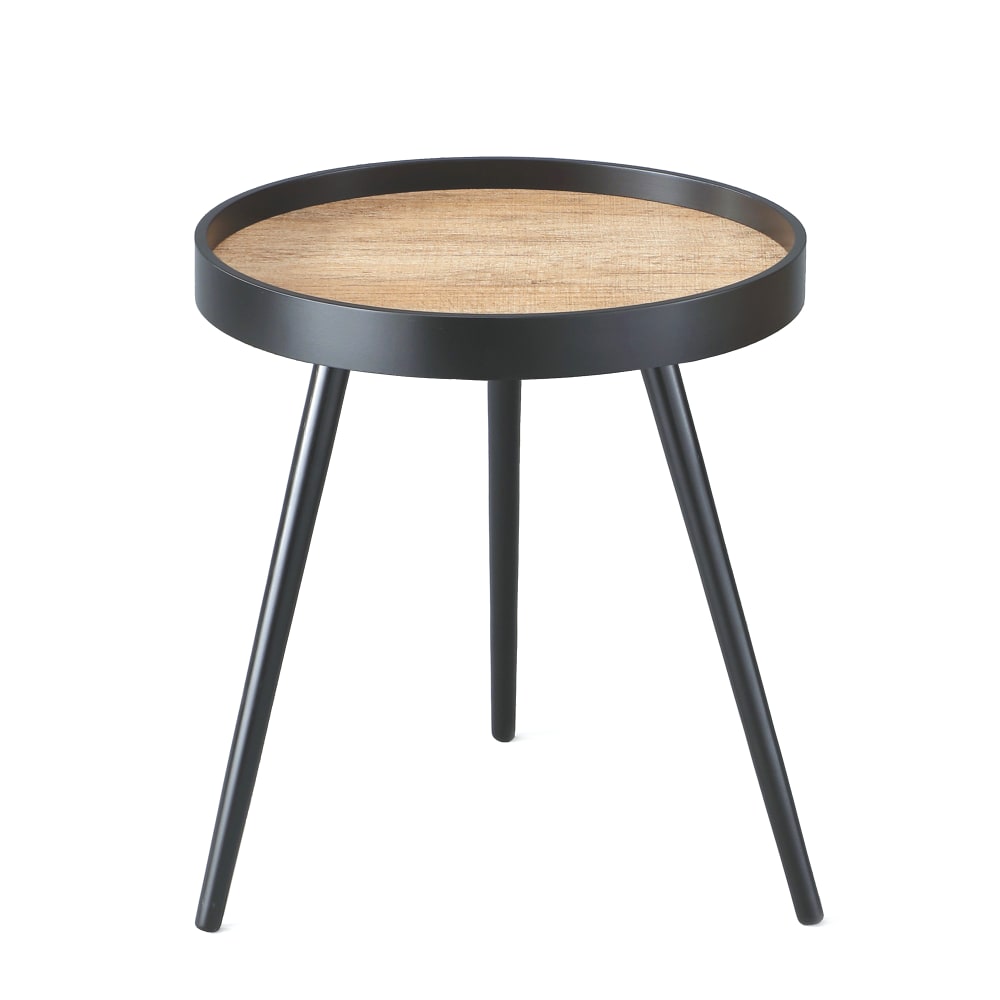 Tavolino nero con gambe legno e piano rovere, Ø46x53,5 cm