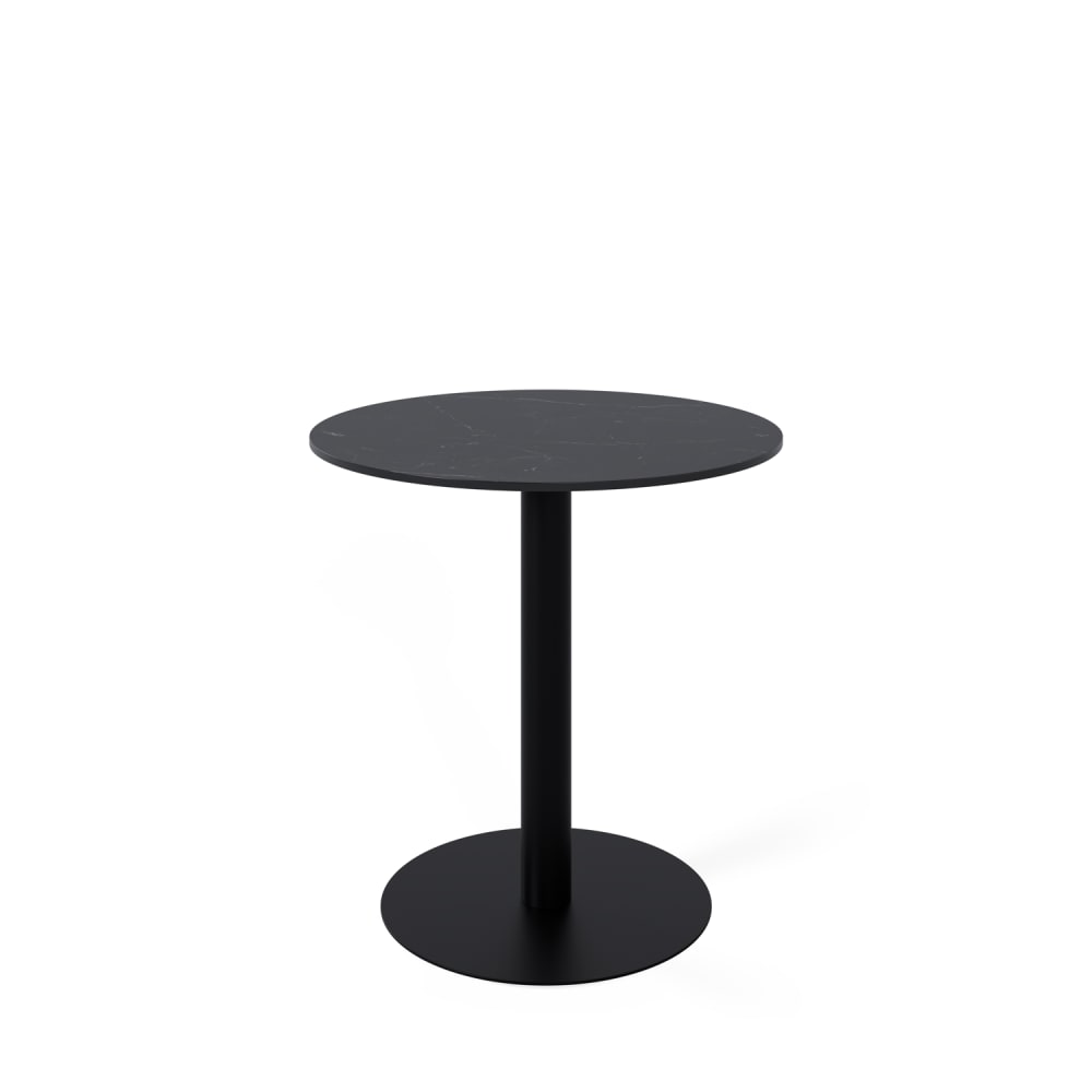 Tavolo basso rotondo con piano in gres porcellanato nero e gamba nera