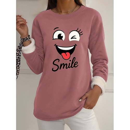 Felpa da donna felpa foderata in pile pigiama caldo grafica con lettere calda casual morbida maniche lunghe collo rotondo top regolari street casual nera gialla rosa rosa scuro grigia primavera