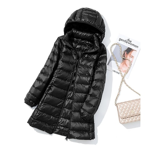 Per donna Giacca Piumino Cappotto Caldo Confortevole Cerniera Tasca Moda Semplice Ferie Uscire Casual Quotidiano Weekend Cerniera Lungo Con Cappuccio Vestibilità regolare Manica Lunga Capispalla Nero