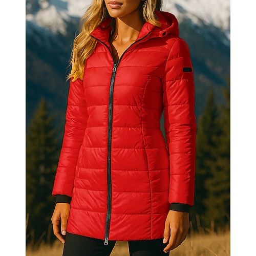 Per donna Cappotto Invernale Giacca Piumino Cappotto Caldo Confortevole Cerniera Tasca Attivo Casual Semplice Vacanza Abbigliamento quotidiano Uscire Weekend Lungo Con Cappuccio Vestibilità comoda