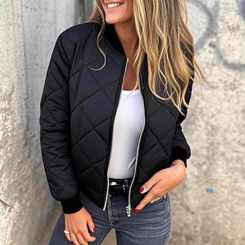 Per donna Giacca Piumino Giacca imbottita Giacca trapuntata Caldo Confortevole Cerniera Tasca Moda Casual Semplice Streetwear Abbigliamento quotidiano Uscire Cerniera Corto Collo alla coreana