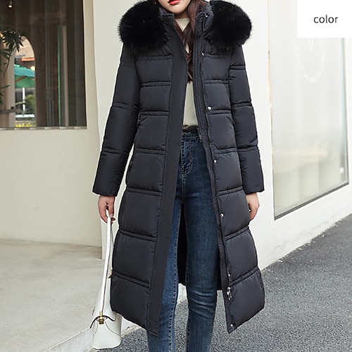Per donna Cappotto Invernale Giacca Piumino Giacca con Cappuccio Caldo Confortevole Cerniera Tasca Collo in Pelliccia Casual Semplice Vacanza Uscire Weekend Lungo Con Cappuccio Vestibilità regolare