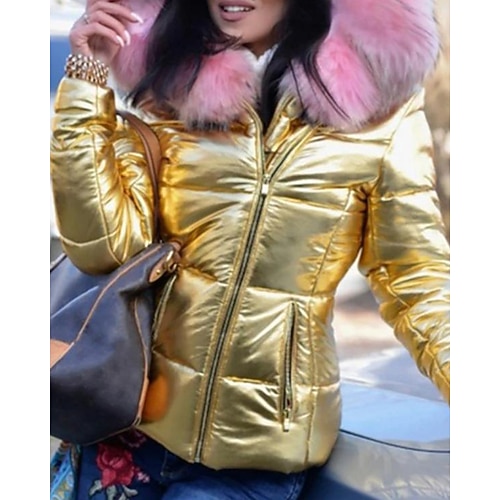Per donna Cappotto Invernale Giacca Piumino Cappotto in Pelliccia Sintetica Caldo Confortevole Cerniera Tasca Casual Semplice Abbigliamento quotidiano Uscire Weekend Regolare Con Cappuccio