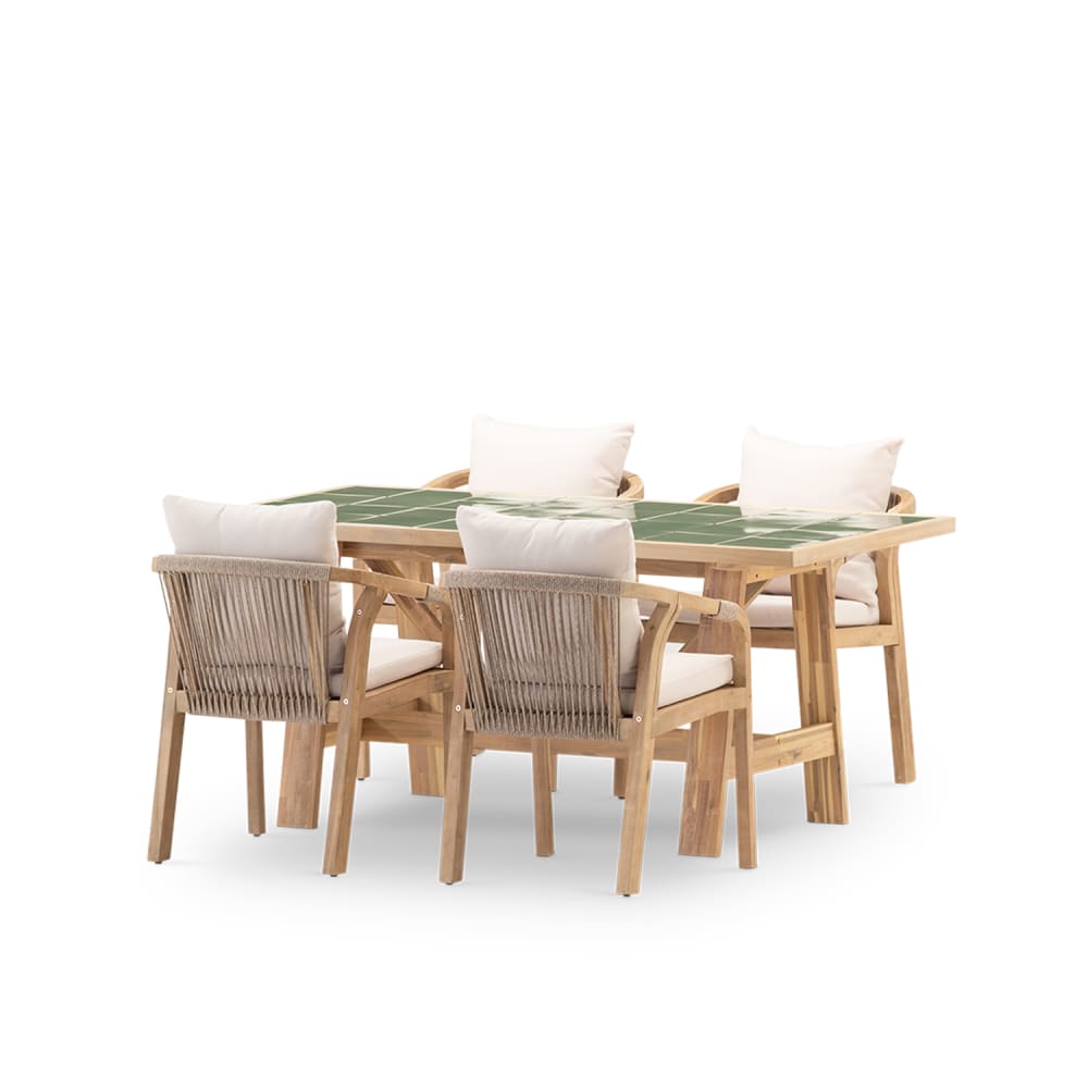 Set tavolo e 4 sedie in legno e ceramica verde 168x87
