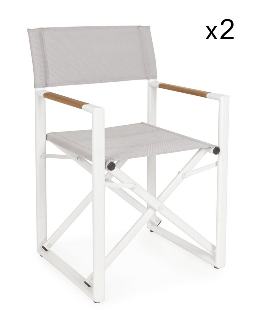 Set di 2 sedie regista in alluminio bianco,textilene grigio,pieghevoli