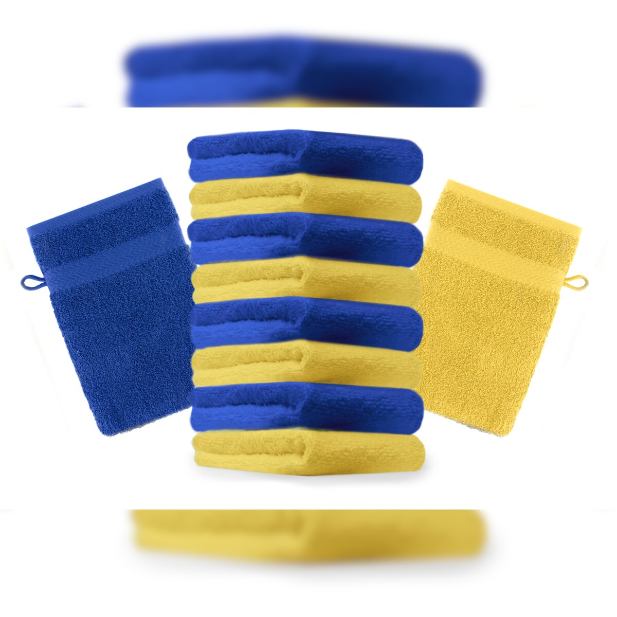 Betz 10 Stück Waschhandschuhe PREMIUM 100% Baumwolle Waschlappen Set 16x21 cm Farbe gelb und royalblau