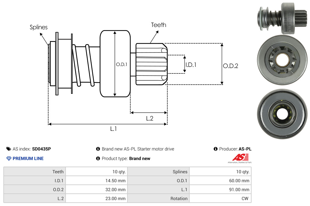 AS-PL Freilaufgetriebe, Starter Universal für VW MERCEDES-BENZ A0001519913 TRA911335 0001519913 SD0435P