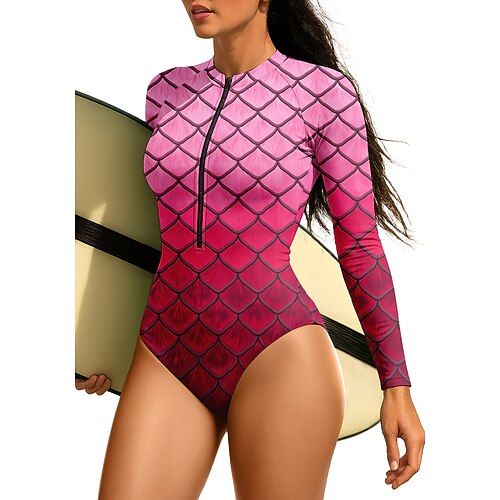 Per donna Top sottomuta Costume da surf intero Costume da bagno Geometrico Tropicale Color-blocking Protezione Solare UV UPF50 Ultra Leggero (UL) Manica Lunga Costume da Bagno Top sottomuta Con zip