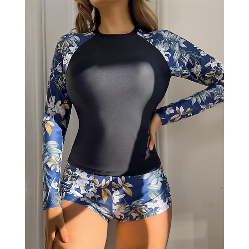 Per donna Top sottomuta Costume da bagno 2 pezzi Tropicale Ultra Leggero (UL) Protezione UV Elastico Manica Lunga Costume da Bagno Con zip Surf Snorkeling Primavera