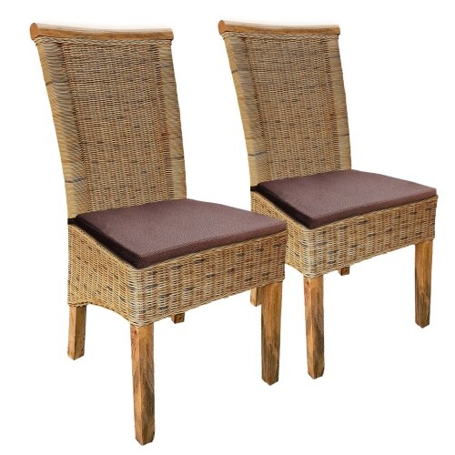 Esszimmerstühle Set 2 Stück Rattanstuhl tabacco Perth Rattan Stuhl Korbstuhl nachhaltig : mit Sitzkissen