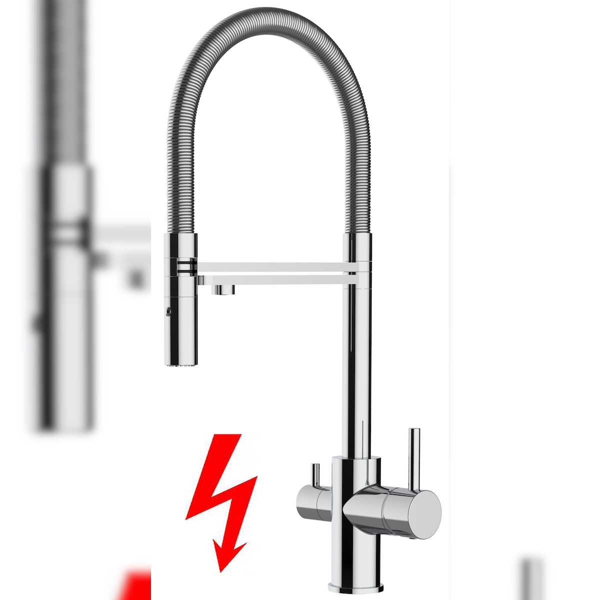 Vizio Niederdruck 3 Wege Wasserhahn Küchenarmatur Spültischmischer FL Verchromt, mit 360° schwenkbarem Stahlfeder Auslauf und abnehmbare 2 strahl Handbrause