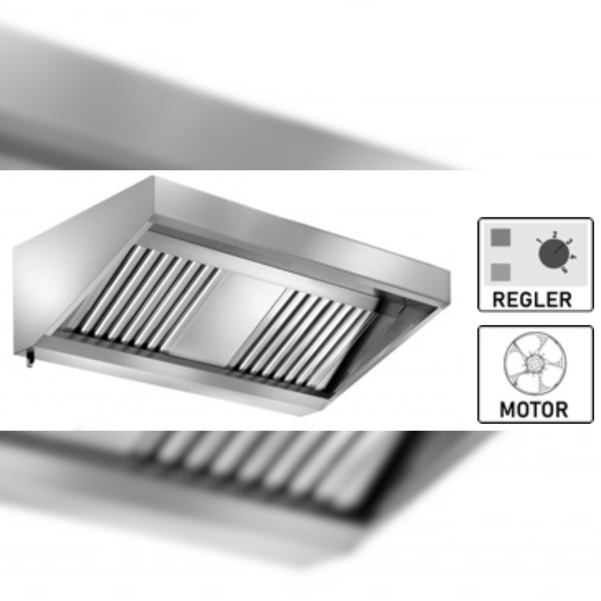 A&S Gastro Wandhaube Edelstahlnklusive eingebautem Ventilator (230 V) mit externem Regler, umlaufende Fettauffangrinne, herausnehmbare Flammschutzfilter Typ-B,
